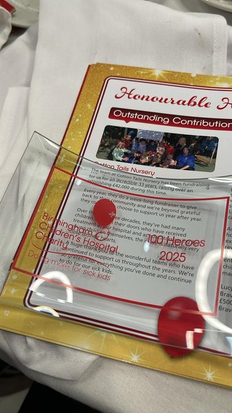 Our main priority has been Birmingham Children’s Hospital, where each year our ‘Fun Week’ and themed events contribute to a substantial donation. We’re proud that Cotton Tails Nurseries have been recognised as one of the hospital’s Top 100 Fundraisers - and our very own Dr Whoot owl, part of Birmingham’s 2015 Big Hoot trail, sits proudly at Hagley as a reminder of that community spirit.